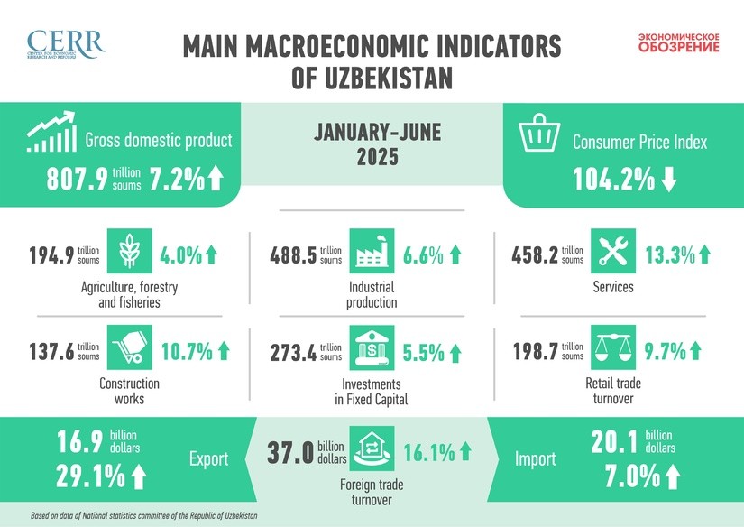 Overall, in the first half of 2025, Uzbekistan’s economy demonstrated steady recovery and structural resilience. Active investment and foreign economic policy, support for the real sector, and a decline in inflationary pressure contribute to a positive macroeconomic trajectory.